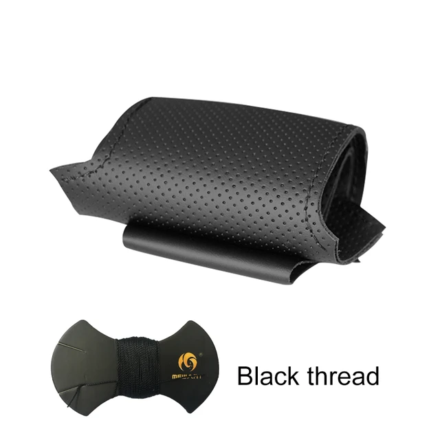 Amazon Com Aully Park Universal Car Steering Wheel Cover Genuine Leather Stitch On Wrap Size M Black Automotive